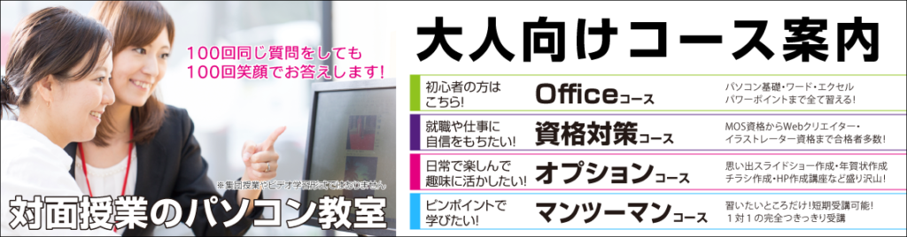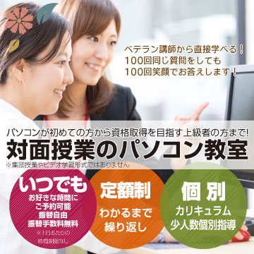 はじめてでも、プログラミング・資格対策・Word、Excel、ホームページができるようになる対面レッスン式パソコンスクール