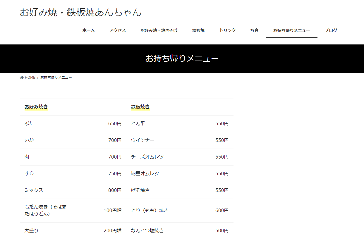 お好み焼き・鉄板焼「あんちゃん」のホームページ完成!