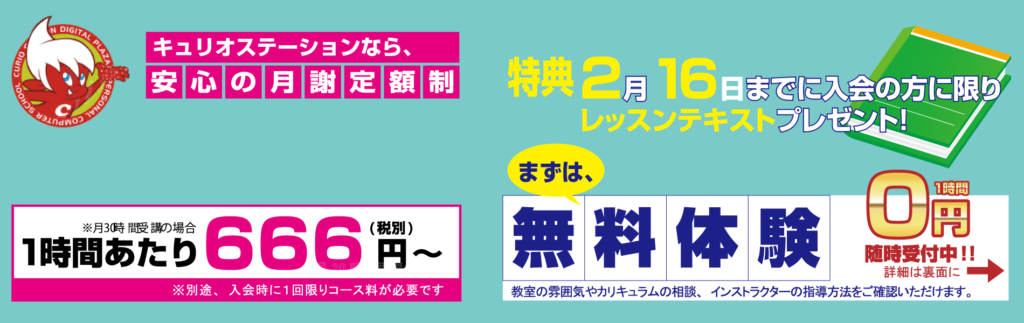 キュリオステーション長岡天神店では、2月16日までにご入会の方に限り