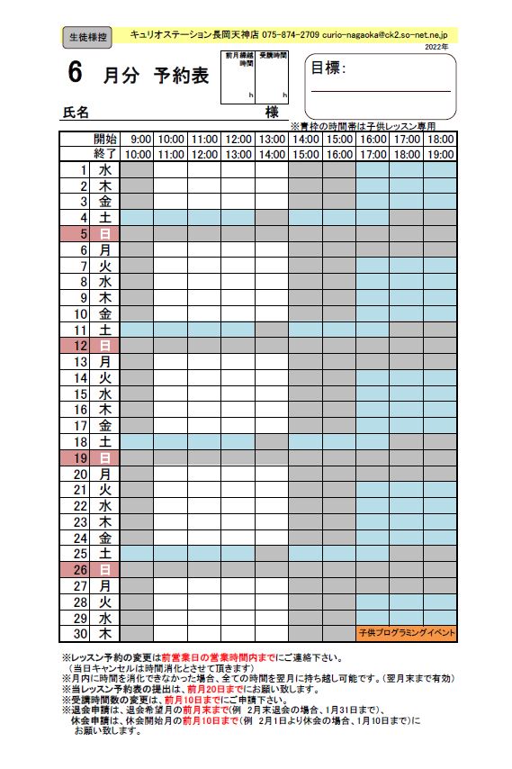 2022年6月のレッスンスケジュール