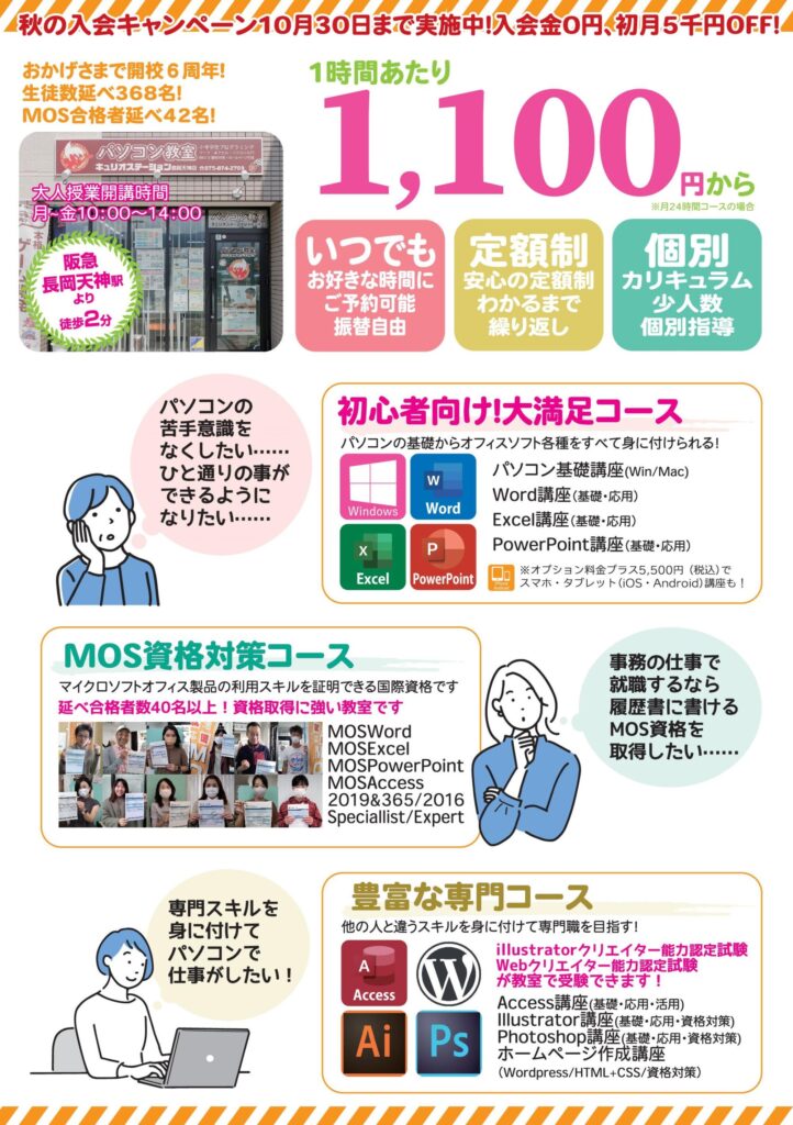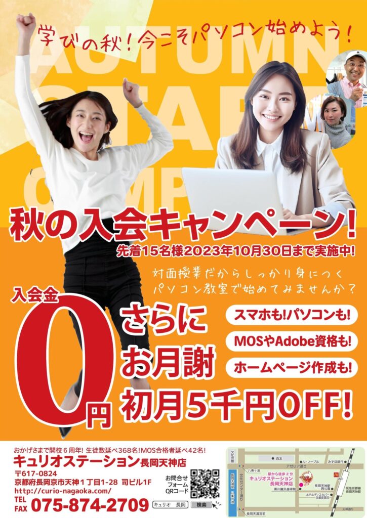 パソコン教室キュリオステーション長岡天神店では、秋の入会キャンペーン実施中です!
