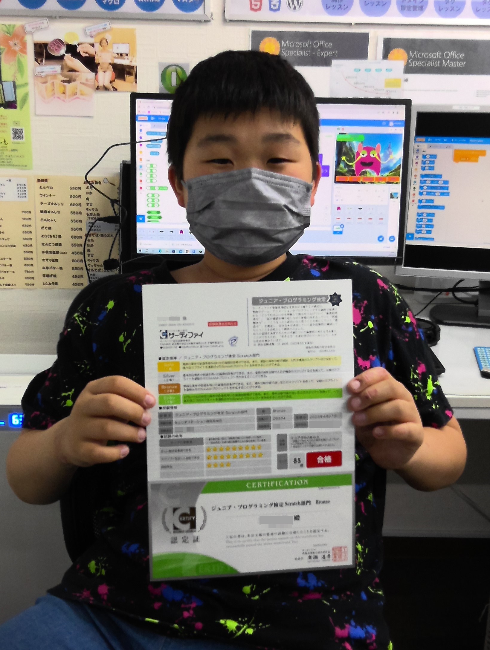 2023年4月27日 / 最終更新日 : 2025年2月14日 widetree その他 ジュニア・プログラミング検定 ブロンズ級合格 マイクラッチファーストコースを修了したM君が 見事ブロンズ級に合格されました!おめでとうございます😊👏✨ M君はレッスンで作成したプログラムをカスタマイズするのが上手で、いつも楽しい作品に仕上げてくれます! 今後はScratchコースかUnityコースどちらに進むか迷われてますが、どちらに進んでも楽しい作品を生み出してくれると思います✨ この調子でこれからも頑張っていきましょう!✨✨