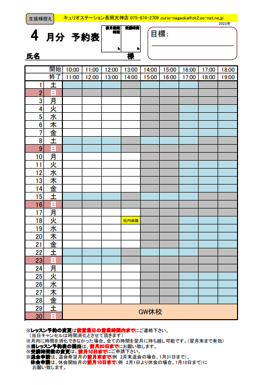 2023年4月のレッスンスケジュール