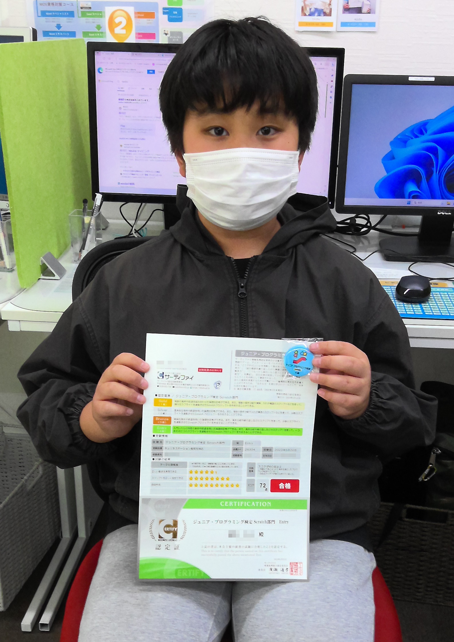 2023年5月31日 / 最終更新日 : 2025年2月14日 widetree その他 ジュニア・プログラミング検定 エントリー級合格 マイクラッチファーストコースまで進まれたT君が 見事エントリー級に合格されました!おめでとうございます👏😊✨ T君は小学2年生の時から教室に通ってくださり、楽しくレッスンを受けてくれています👏👏👏 タイピングがものすごく上手で、教室主催のタイピングコンテストで何度も入賞しましたね✨✨✨ 今後も楽しくプログラミング学習を続けていってくださいね😊!