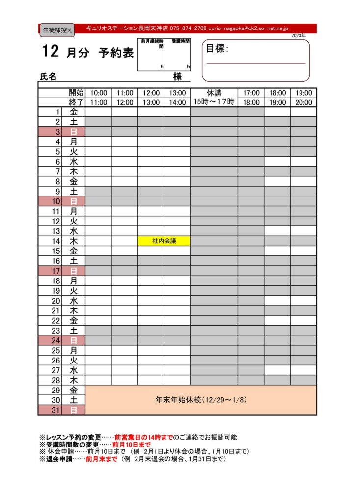12/14(木)12時~14時は社内会議の為、レッスンをご予約いただけません。