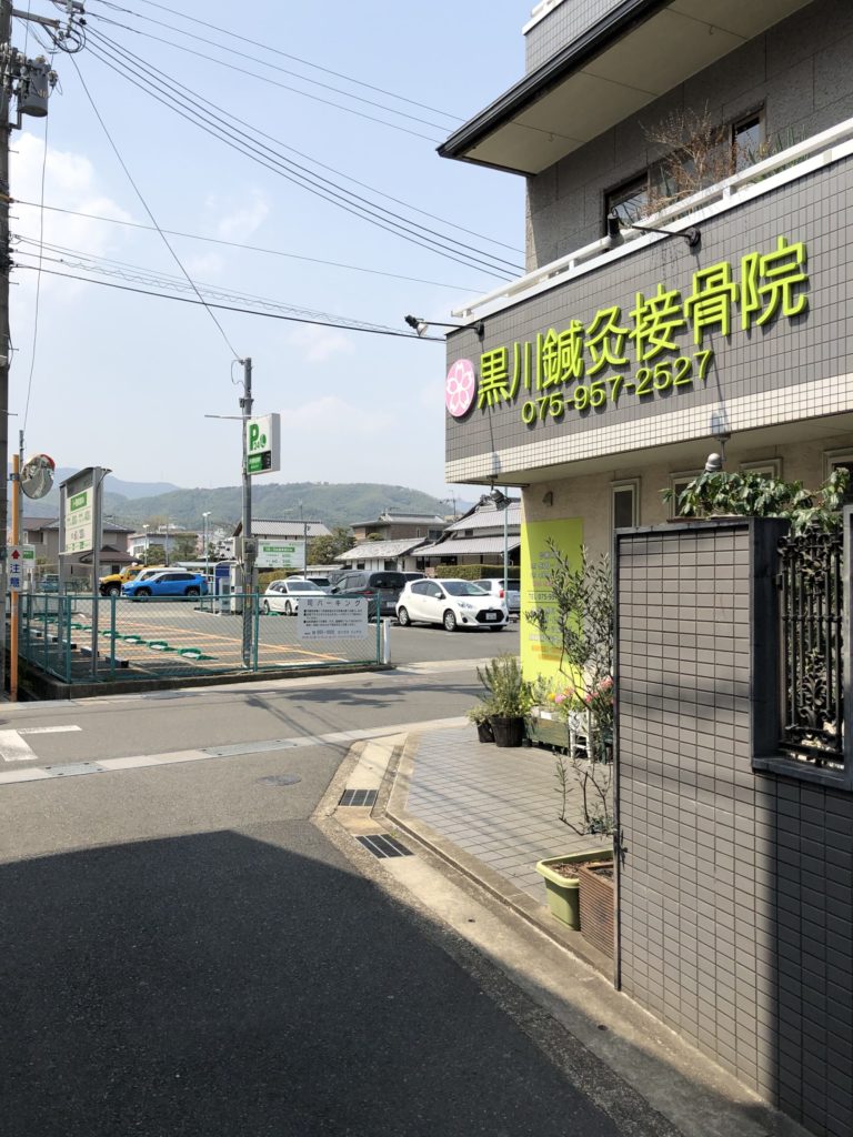 | つきあたりには、「黒川鍼灸整骨院」が見えます。この接骨院さんのとなりです。右に曲がります。 |