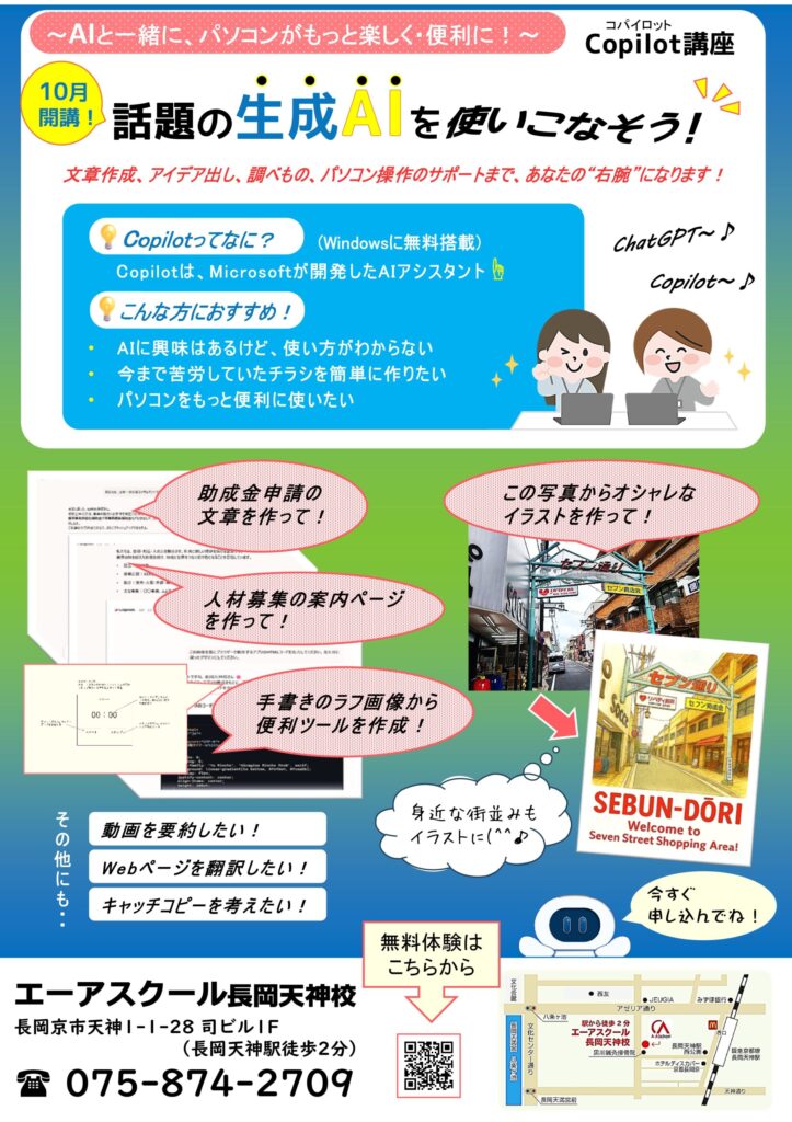 エーアスクール長岡天神校では、10月から新しく