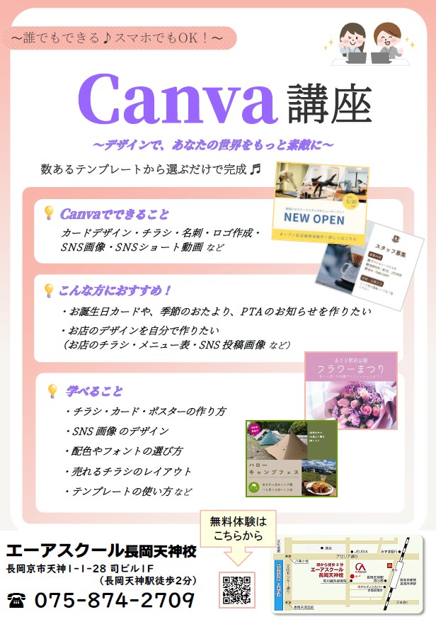 エーアスクール長岡天神校では、11月から新しくCanva(キャンバ)講座を開講します🤗✨