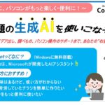 2025年9月19日 / 最終更新日 : 2025年9月19日 widetree お知らせ 生成AI新講座のお知らせ こんにちは!インストラクターのわたにです❣️ エーアスクール長岡天神校では、10月から新しく Windowsに無料搭載されているCopilot(コパイロット)を使った生成AI講座を開講します& […]