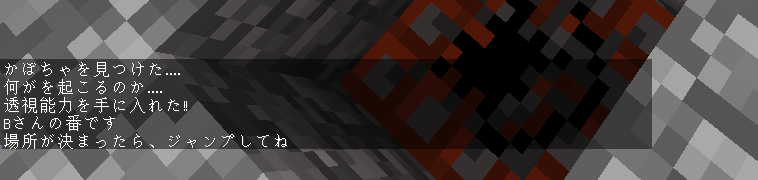 ジャンプしたら、自分の下の岩盤が空気に変わり、自分の下にあるブロックが分かります。