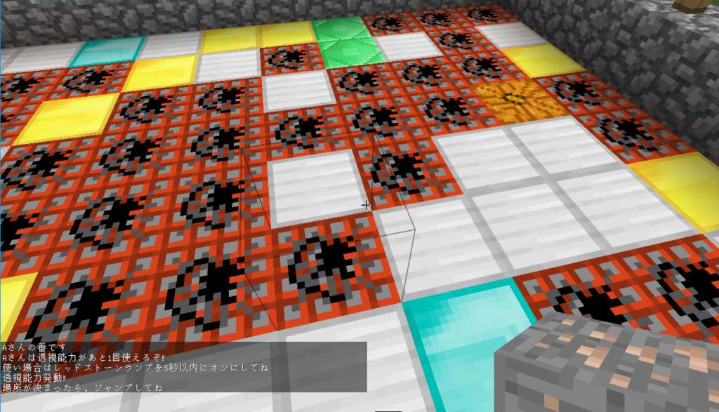 レッドストーンランプの上のブロックが赤の羊毛の時はAさんの番で
