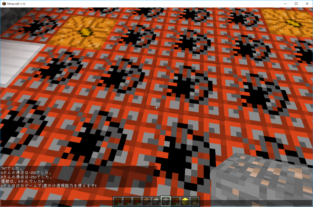 また、掘り当てたブロックが「エンドポータル」なら”一発逆転チャンス”となり、相手のポイントを減らすことが出来たりすることもあったりで、アイデアもたくさん盛り込んでくれました。
