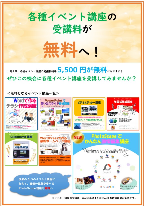 (※イベント講座の受講は、Word基礎またはExcel基礎の履修が条件となります。)