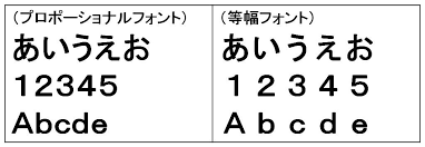 HGや、MSは、等幅フォントで、すべての文字が均一の幅で表示されます。