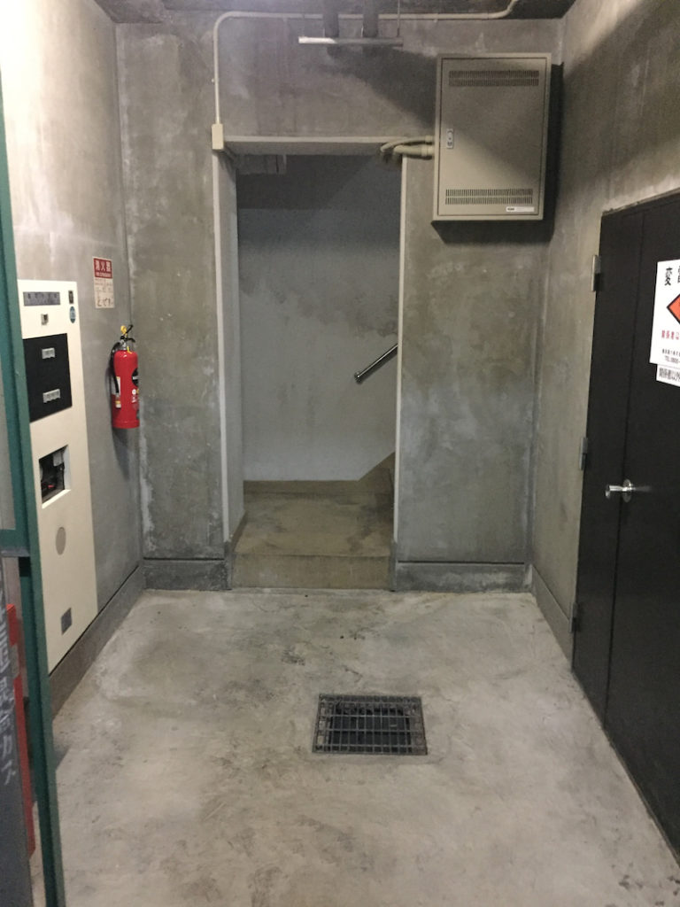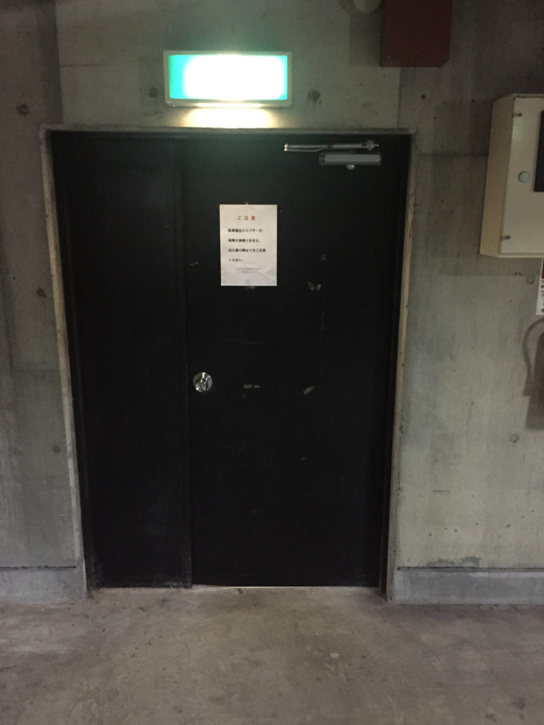 (10)非常口を開けると、こんな感じで、上にあがる階段が見えます。