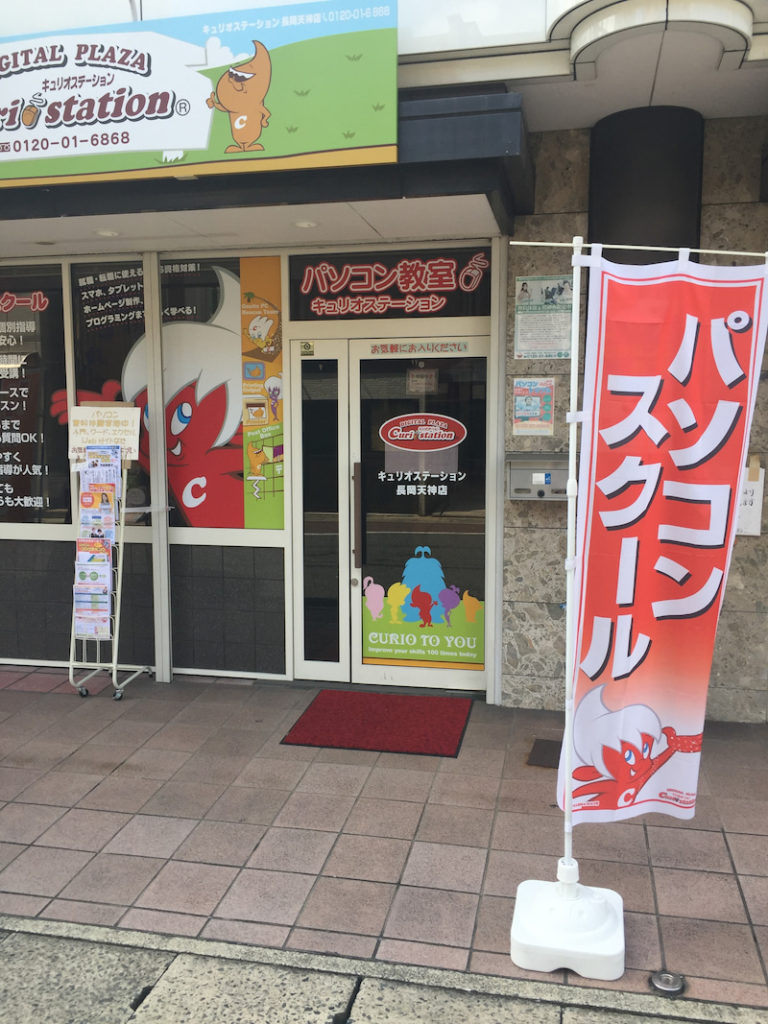 長岡天神駅から車で1~2分(徒歩6分)で、左側に「パソコン教室」の看板が見えてきます。
