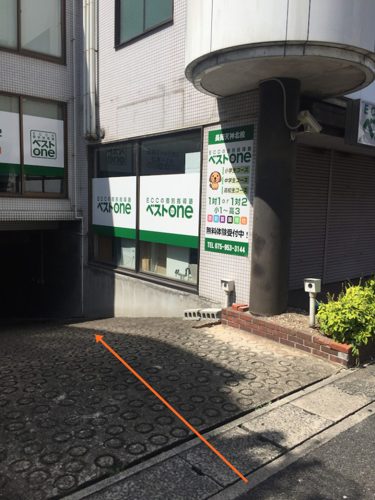 (2)当教室の向かって左隣のECC英会話ジュニア(ベストONE)横に、地下に入る道があります。