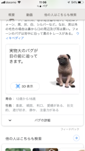 スマホのグーグル検索で、『パグ』と検索すると
