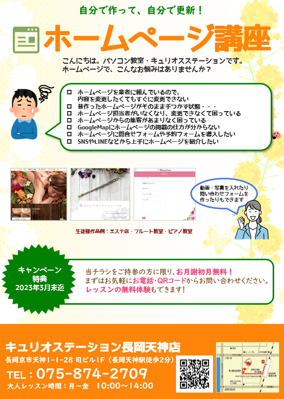 ただいま、ホームページ作成講座キャンペーン実施中です![]()
