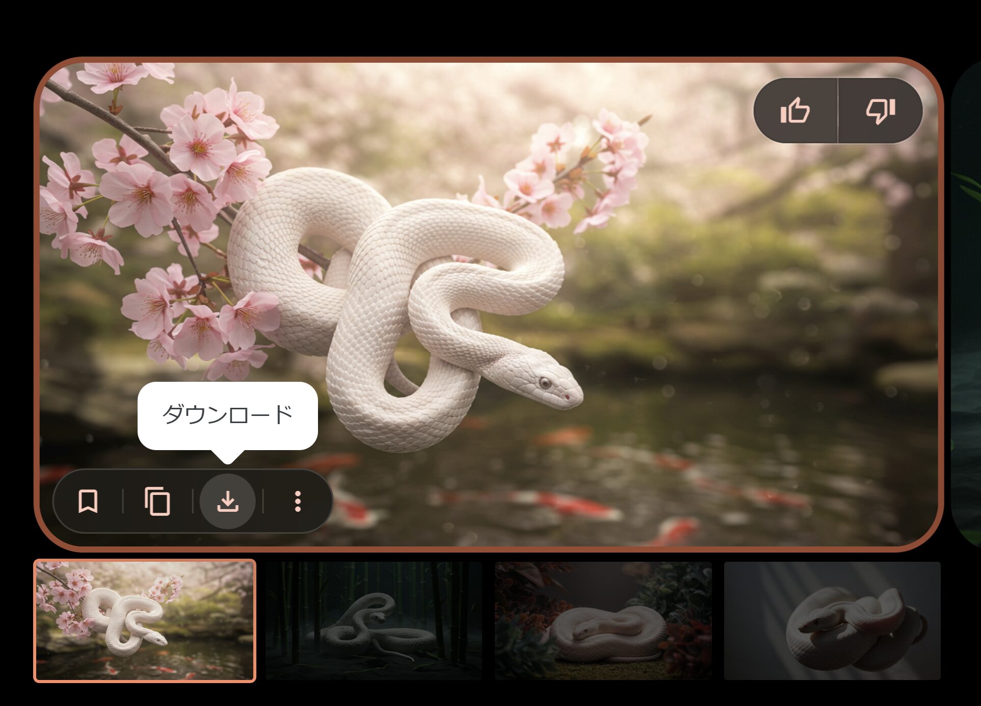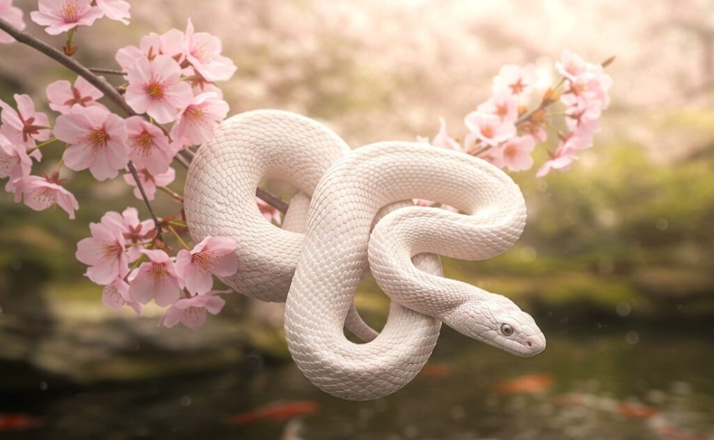 ”幸運を呼ぶオーラのある優美な白蛇”で生成してみました😄🐍