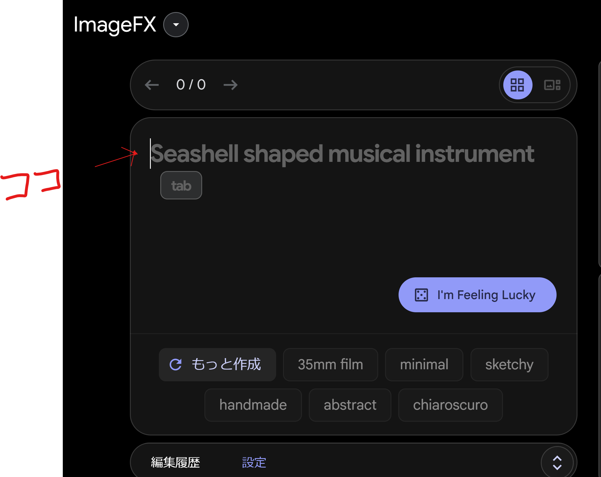 次に、作りたい画像の指示文章(プロンプト)を入力します。