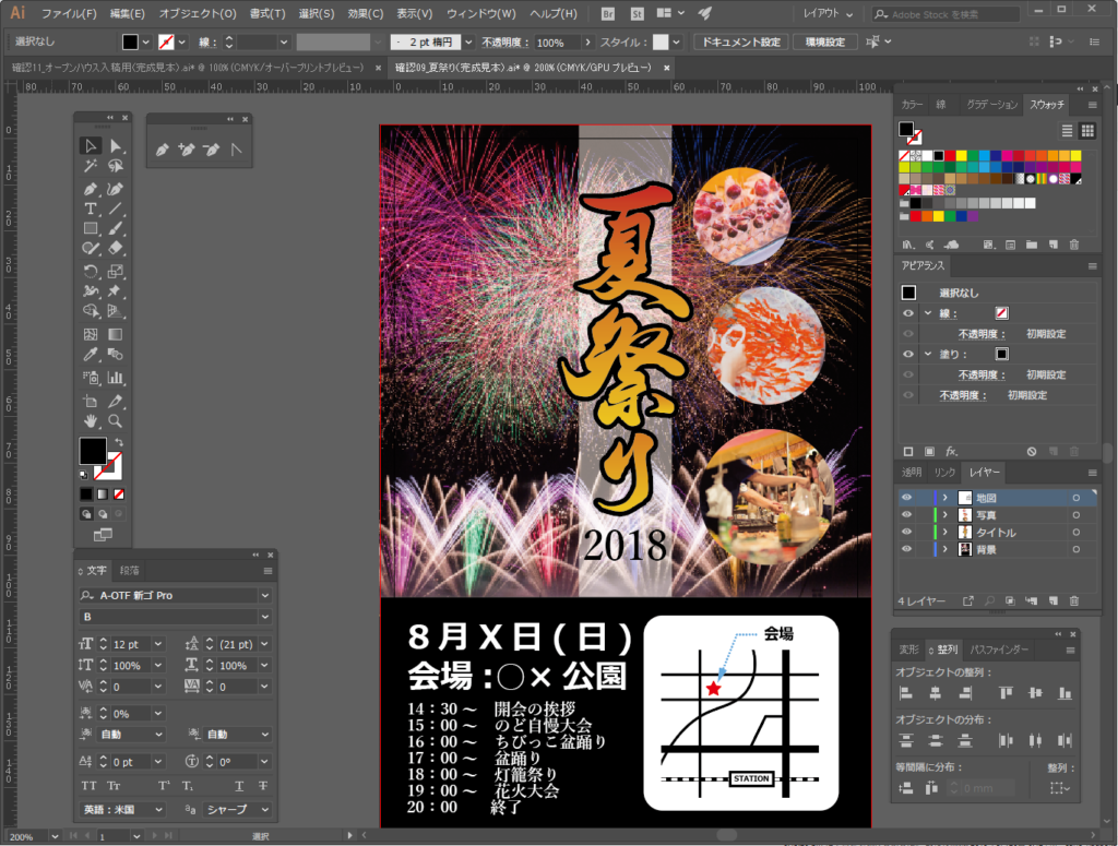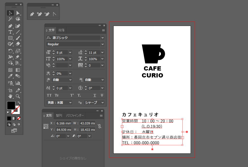 | 名刺~文字の編集 | はがき(裏面)~レイヤー |