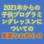 2020年12月25日 / 最終更新日 : 2020年12月25日 widetree 2021年からの子供プログラミングレッスンについての重要なお知らせ LINEご登録の保護者様には、12月23日にLINEの一斉配信にて下記案内させて頂きました。 LINEのご登録をされていない方もいらっしゃいますので、こちらでもご連絡致します。 12月23日 教室長の中川です。 年内の開 […]