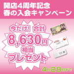 2021年3月17日 / 最終更新日 : 2021年3月18日 widetree 春のご入会特典キャンペーン4月28日まで!今なら総額8630円分お得です! おかげさまで、2021年4月でキュリオステーション長岡天神店は開店4周年を迎えることとなりました。 日頃の感謝を込めて、4月28日まで、ご入会特典キャンペーンを実施しております。 総額8,630円分特典内容 コース料金5 […]