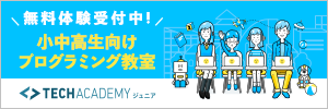この度、当教室では、小中学生プログラミング受講生の増加に伴い、より、本格的なプログラミングが受講できるステップアップ教材として、CMなどでも有名な「TechAcademy」のコンテンツを導入することと致しました。