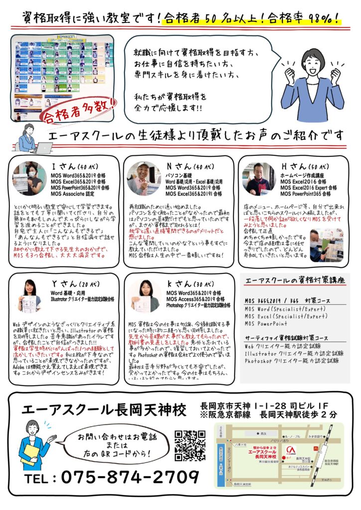 MOSなどの資格取得に強い教室です!合格者50名以上!合格率98%!