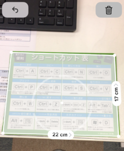 動かしているうちに、測りたいものが四角の場合は自動的に検知して、縦、横の長さを自動的に検知して表示してくれます![]()