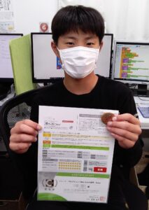 マイクラッチコースをご受講のY君が、ファーストコースを終えられ、見事ブロンズ級に合格されました。