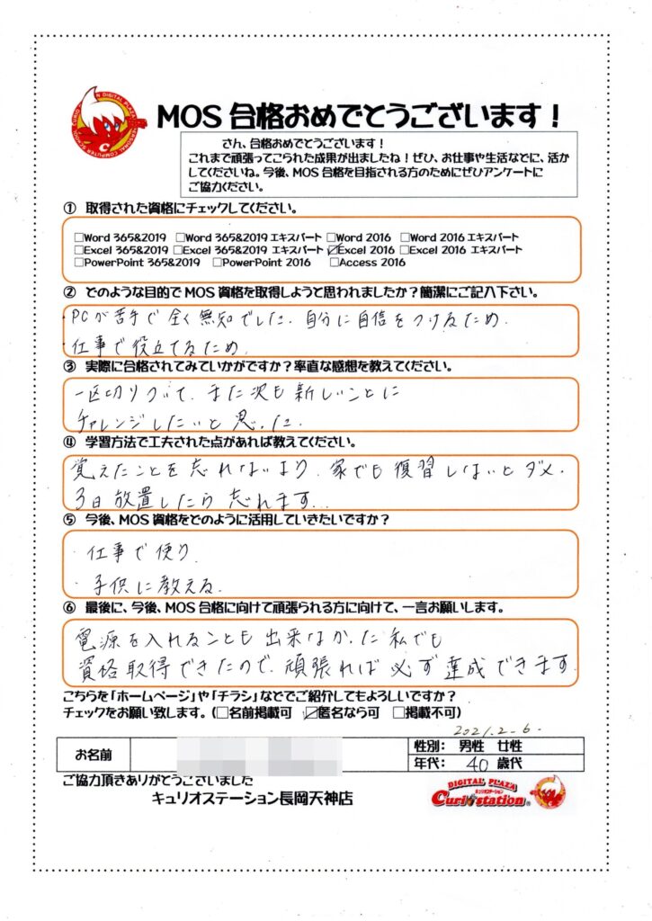 2021年3月9日 / 最終更新日 : 2025年12月8日 widetree MOS資格やその他検定資格 MOS合格者インタビュー(Excel2016スペシャリスト合格 Nさん) MOS合格(Excel2016スペシャリスト)されましたNさんにインタビューにご協力頂きました。 今後、合格を目指される方、ぜひご参考にご覧ください。