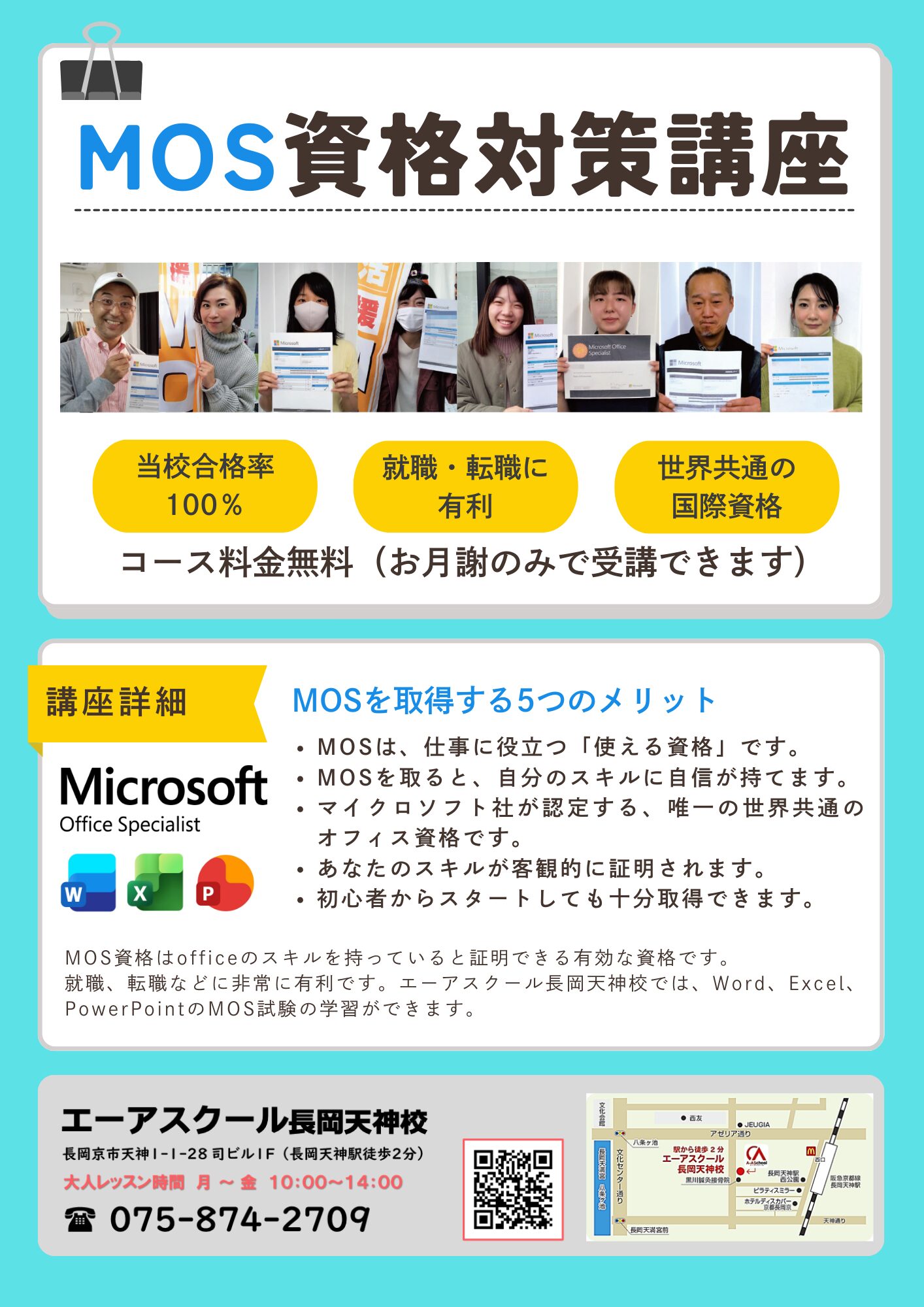 ぜひ当校で「MOS資格対策講座」を受けて資格を取得してください!