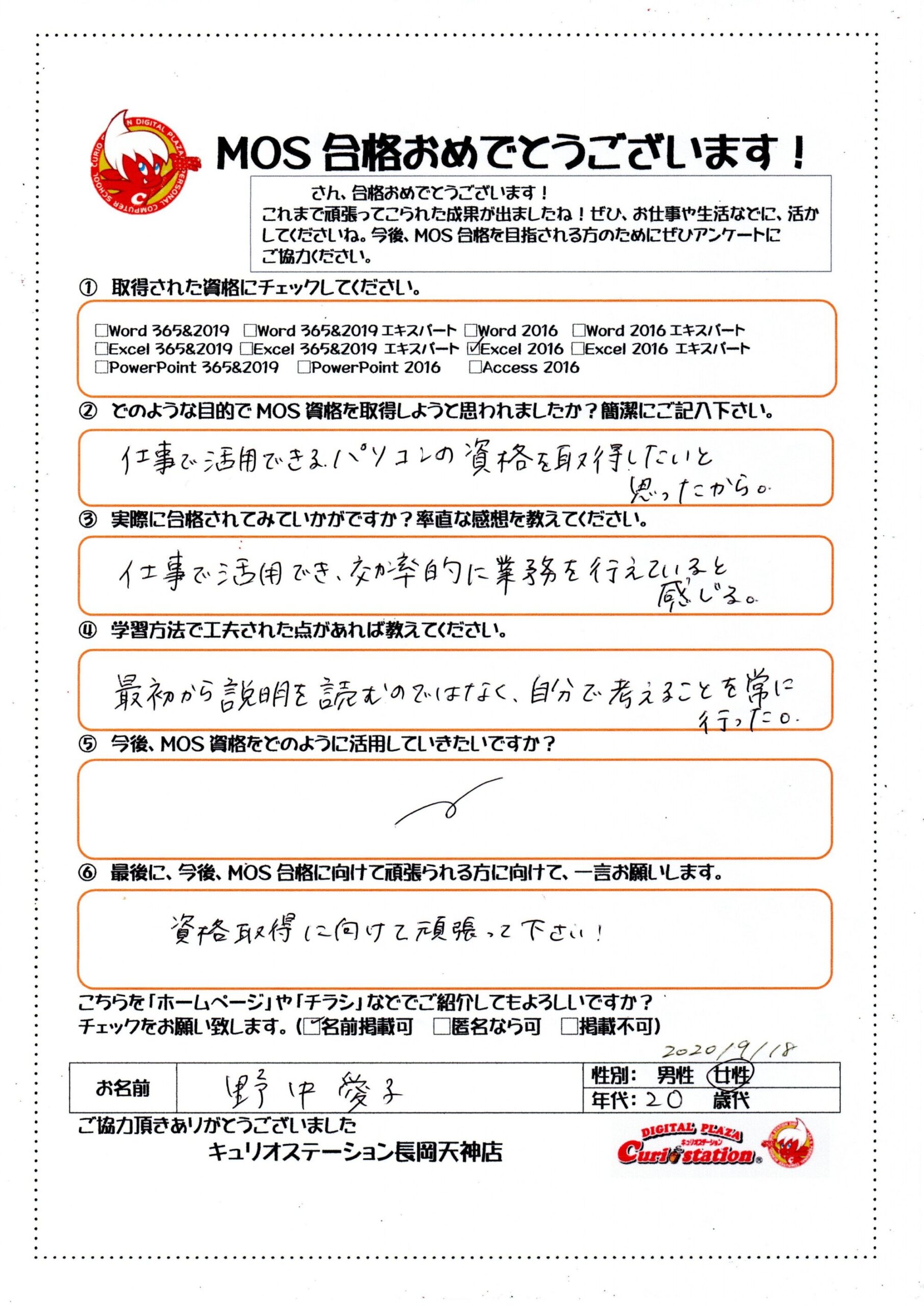 2020年10月17日 / 最終更新日 : 2022年9月21日 widetree MOS資格やその他検定資格 今月もMOS Excel2016 合格者でました! こんにちは インストラクターのさかいです 今日は冷たい雨が降っております気候の変動が激しいですが、体調をくずされないようにしてくださいね さて、当校では8月に続き、先月もMOS合格者出ました MOSコース受講後2ヶ月というスピード取得で、しかも、914点という高得点での合格でした Nさん、ほんとうにおめでとうございます 今後お仕事などにどんどん活かしていってくださいね