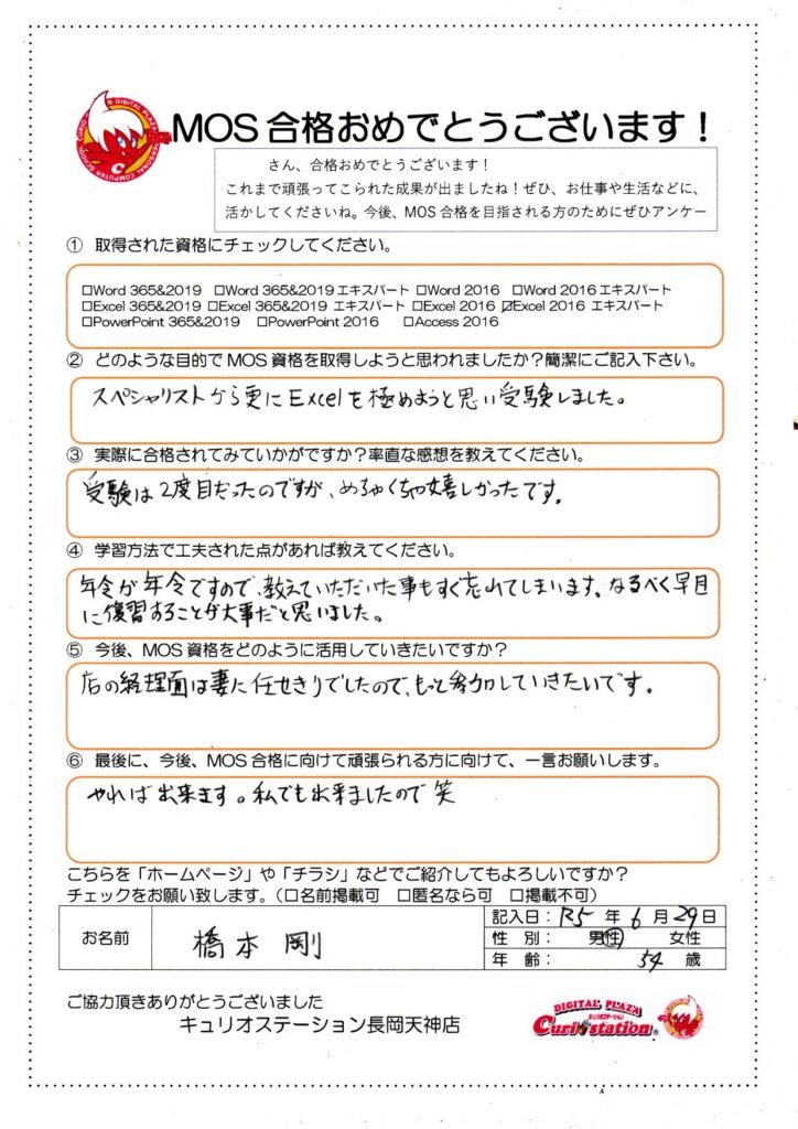 ExcelのエキスパートはMOS資格の中でも特に難しく、橋本さんもお仕事の合間にコツコツと取り組まれての合格でした。頑張っておられる姿を拝見していたので、インストラクター一同もとてもうれしいです!