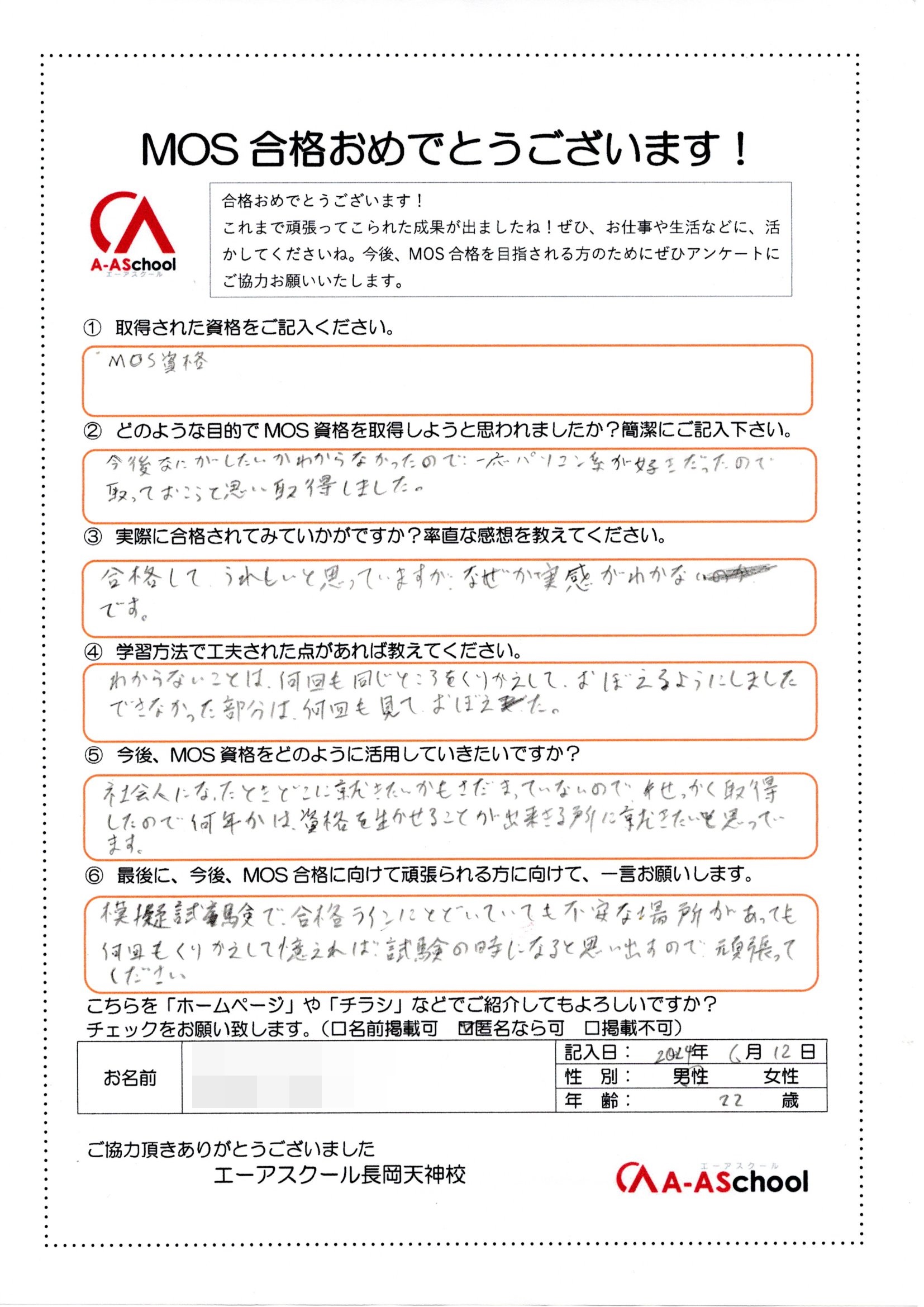 パソコン基礎からスタートされ、大学に通学しながらWordの基礎編・応用編を修了し、MOSWord2019を取得されたTさんが、この度続いてExcel基礎編・応用編を修了後、MOSExcel2019に見事半年間で高得点合格されました!おめでとうございます😊👏✨