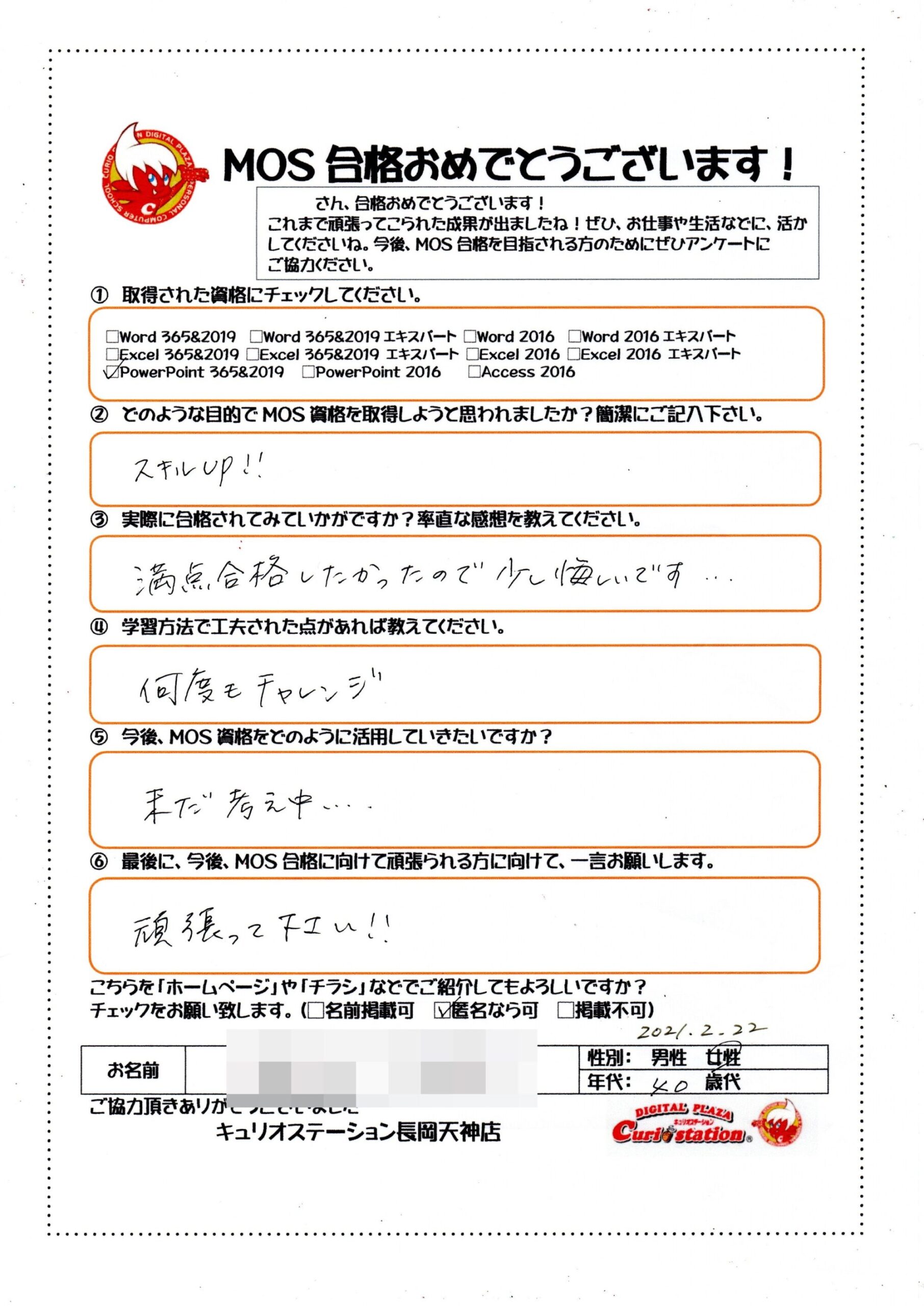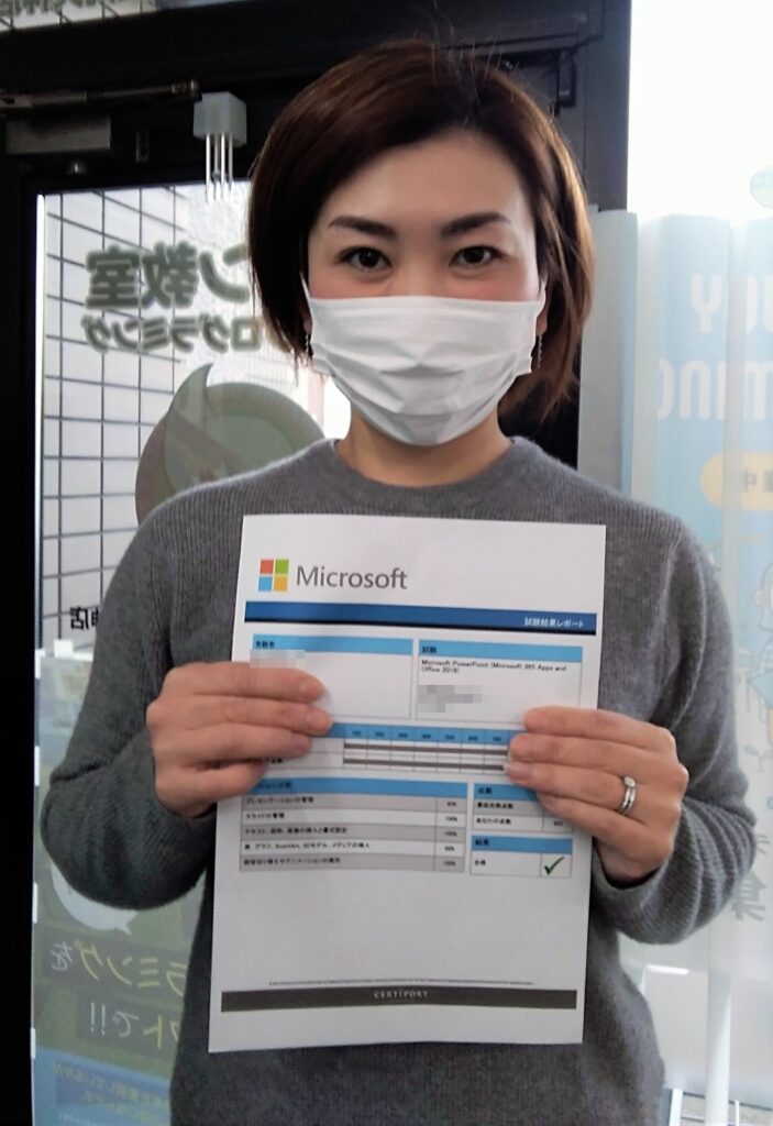 2021年2月22日 / 最終更新日 : 2022年9月22日 widetree MOS資格やその他検定資格 MOS PowerPoint365&2019合格 昨年末にMOSWord2019に合格されたIさんが早くも3ヶ月でMOS PowerPoint365&2019に合格されました!短期間での合格本当におめでとうございます😊👏✨この後も引き続きMOSExcel2019の合格へ向けてチャレンジされます!MOS資格3つめ取得も頑張ってください!