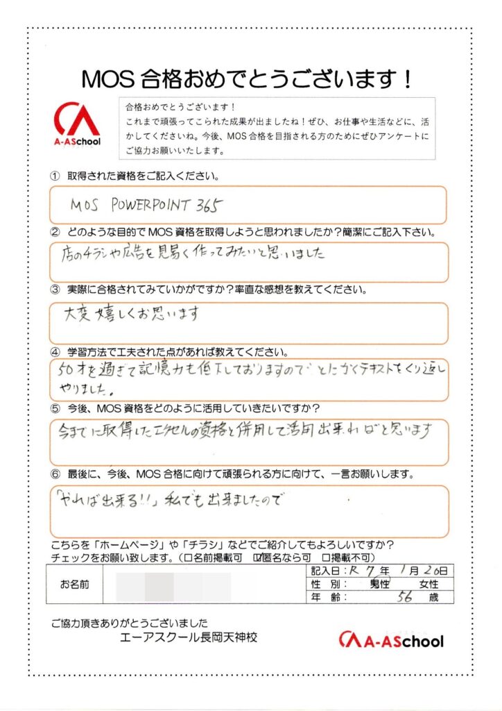 2017年から通われ、MOSWord、MOSExcelエキスパートまで取得されたHさん。今回はMOSPowerPoint365に高得点で合格されました!おめでとうございます!🎊