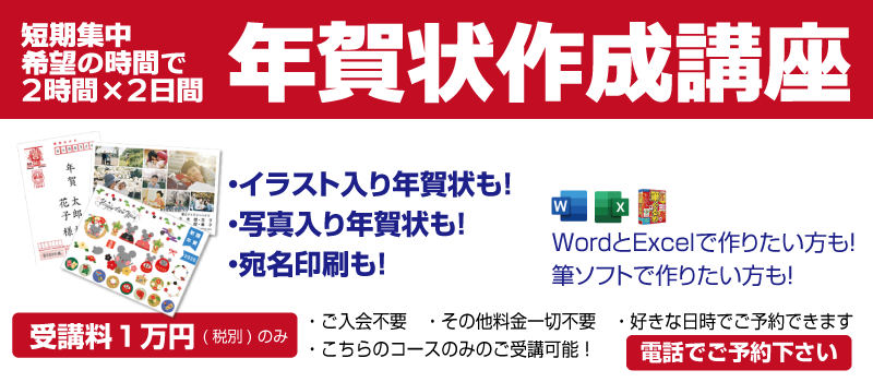 短期集中の2時間×2日間で、パソコンでの年賀状作りに挑戦してみませんか?