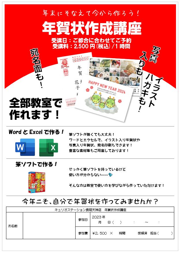 毎年大好評の年賀状作成講座のご案内です