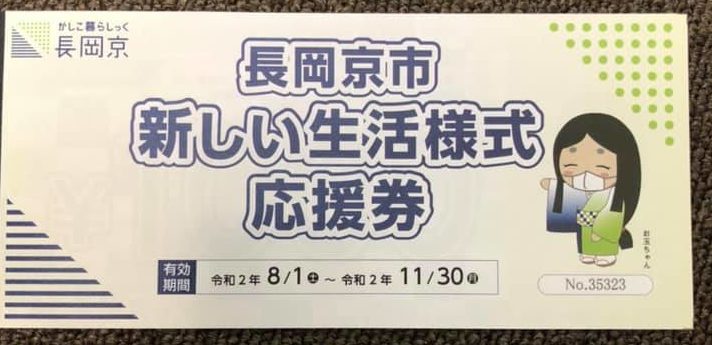 詳しくは、こちらをご確認ください。→ 長岡京市のホームページ(新しい生活様式応援券)