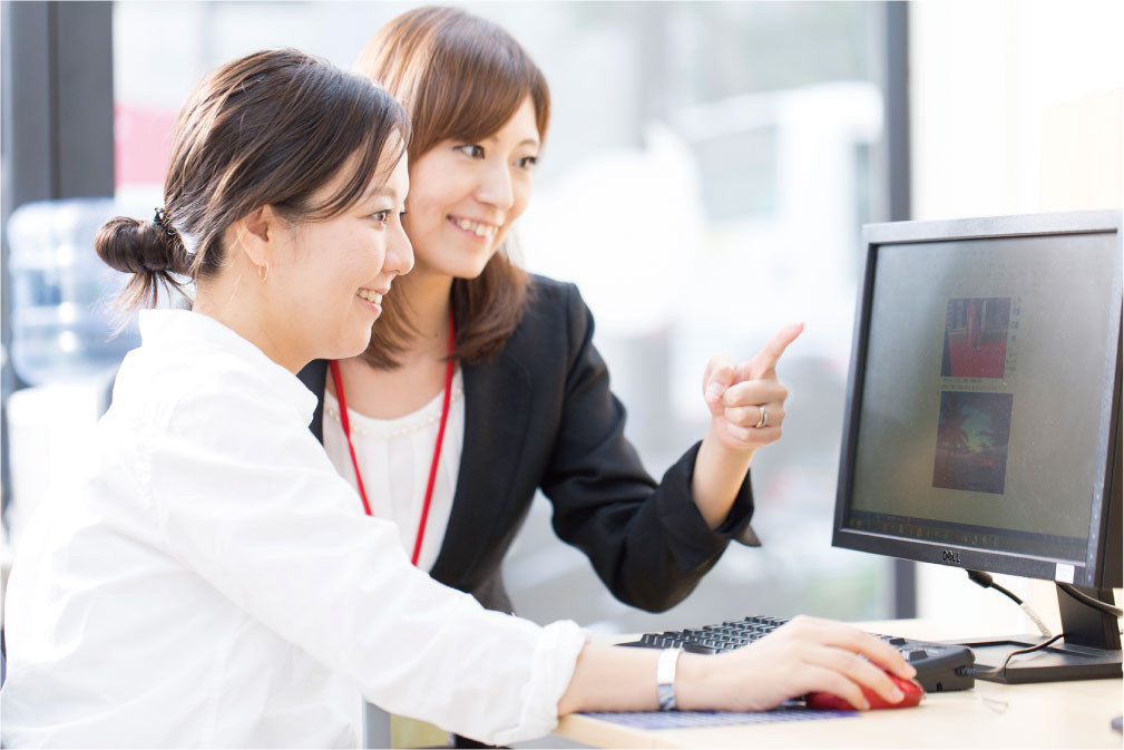 対面授業だから、パソコンが初めての初心者の方から資格取得や専門的技術を身に付けたい上級者の方まで、きめ細やかなレッスンをご受講いただけます。