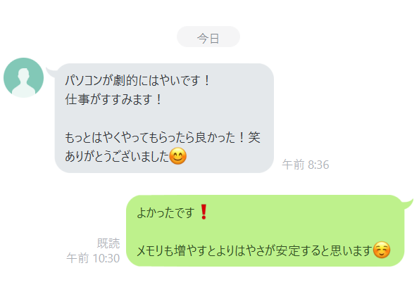 昨日も、お客さんのハードディスクを交換したのですが、起動後、ずっと固まって仕事にならなかったパソコンがさくさく動いて、感謝のLINEを頂きました。