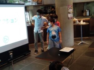 阪急長岡天神駅近くのホテル「ディスカバー京都長岡京」のカフェスペースをお借りして、キッズプログラミング受講生の夏休み発表会を行いました。![]()