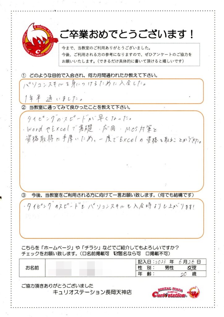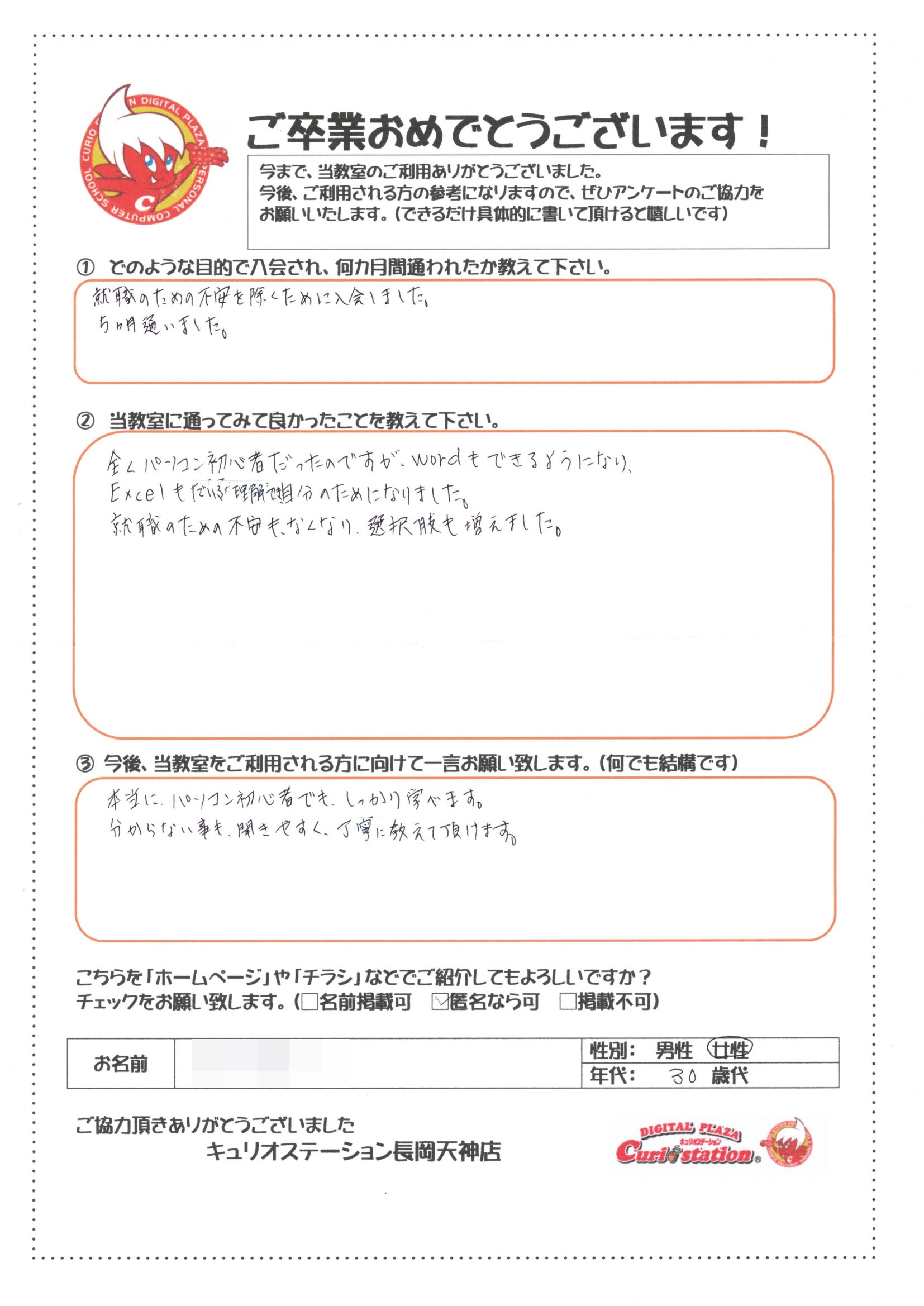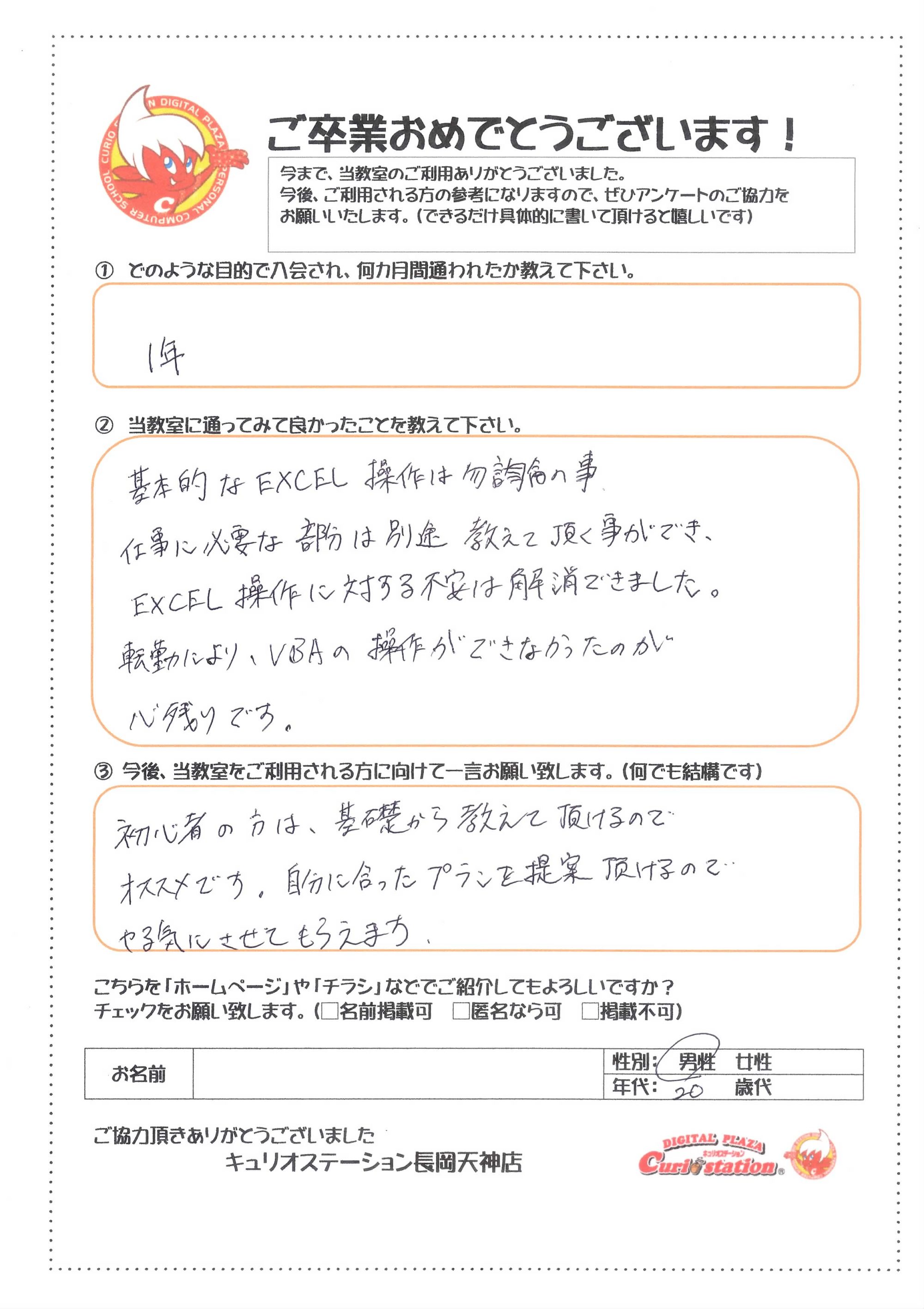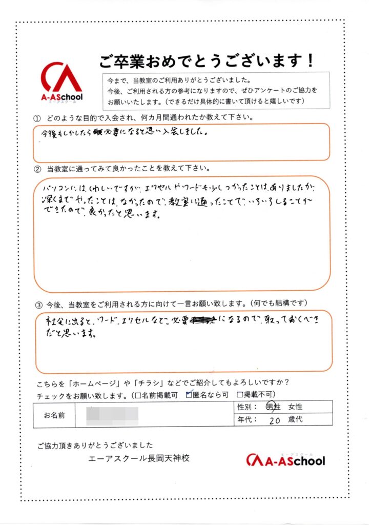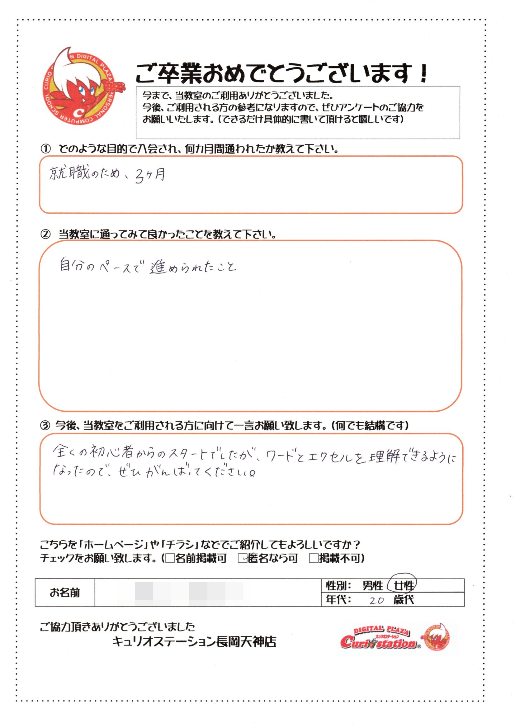 【22歳男性】 会社に入るためExcelが必要なため入会 3ヶ月
