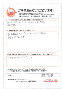 電源を入れるところからのスタートだったので、目標の「4カ月でホームページを自由でも更新できるようになる」は無理があるかな…と思っていましたが、苦手・怖いというイメージしかなかったパソコンの操作が楽しいと思えるようになり、何とか目標にもたどりつけそうです。本当にわかりやすくやさしく教えていただけ、楽しく充実した4カ月間でした。