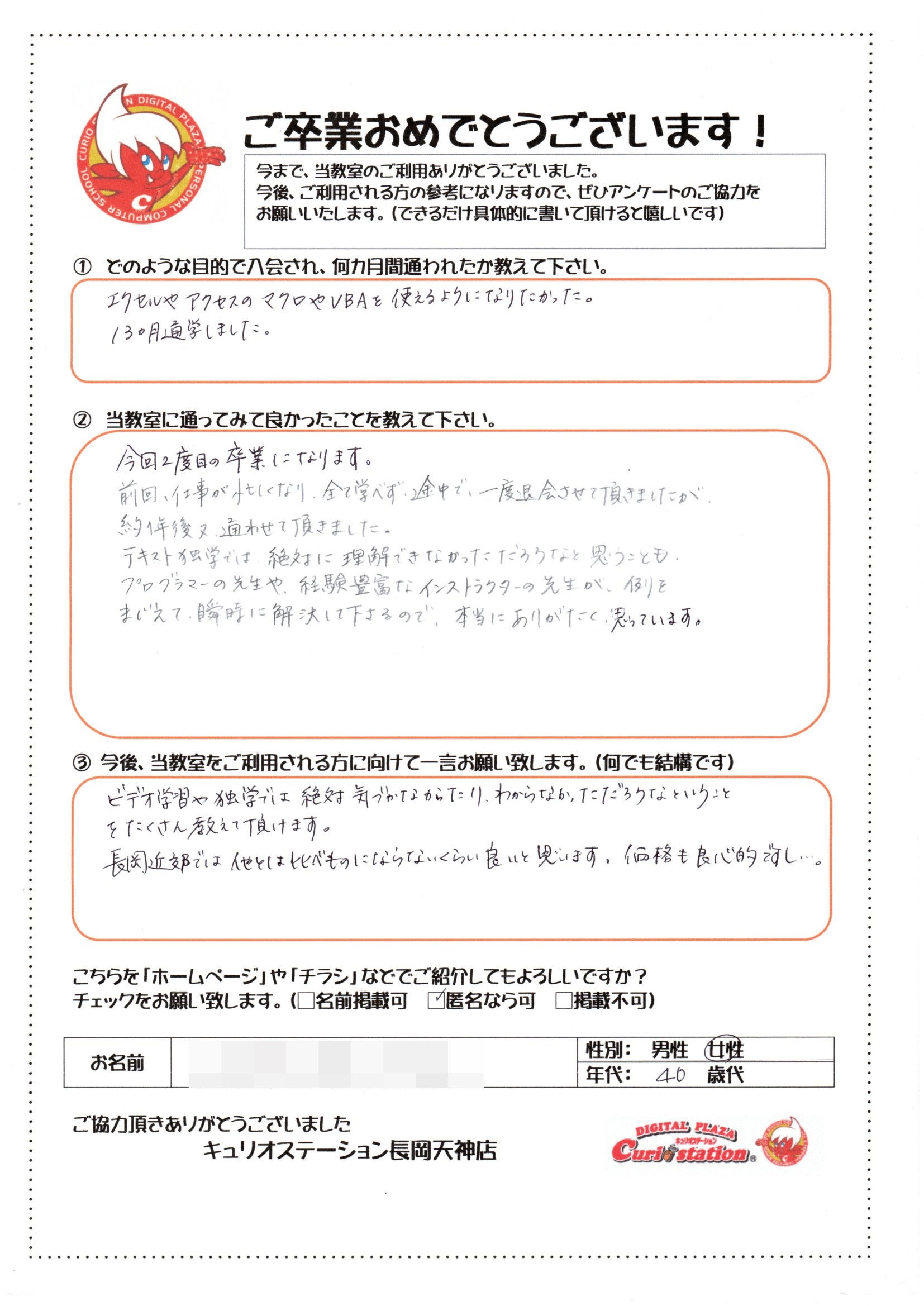 【40代女性】ExcelVBA・マクロ・Access基礎&応用・AccessVBA・PowerPoint 2年