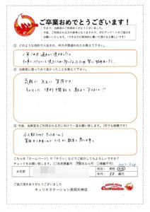 質問しやすく、親切に対応していただきました。ガレージがあるのも通いやすかった。