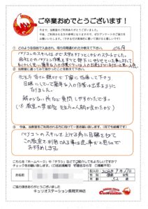 個人の必要なことを選んで丁寧に何度も繰り返し教えていただきましたので、身に付いたものは大きいと思います。